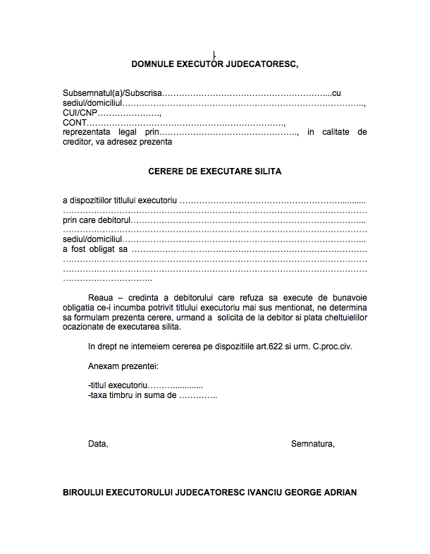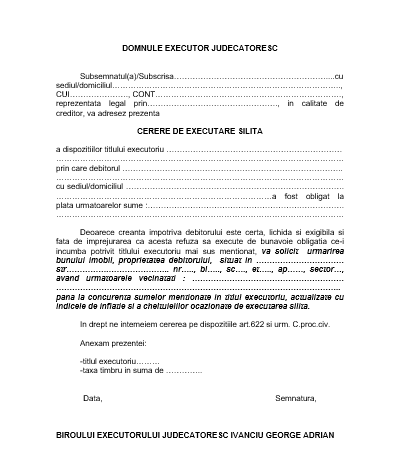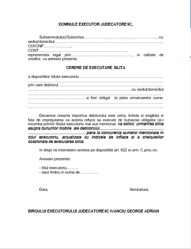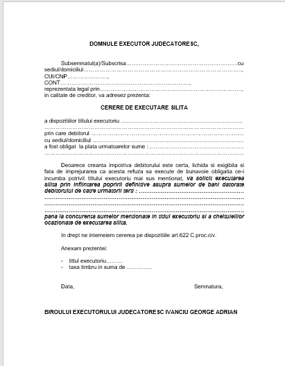 Cerere executare silita