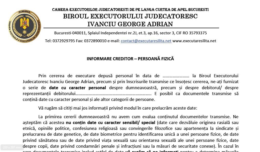 Informare GDPR creditor